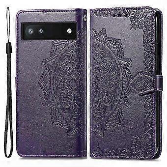Pixel 6a Mandala Flower Flip Case, Soft PU Leather Wallet with Strap
