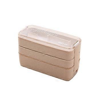 Portable Bento Box, 3-Layers Lunch Box, Beige