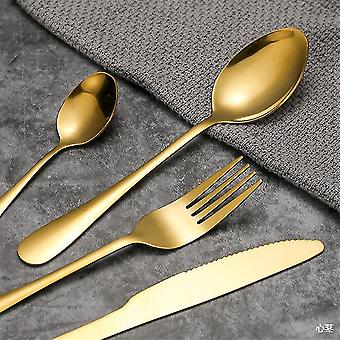 Portable Stainless Steel Flatware Set Thickened Steak Knife Fork Spoon Tableware with Golden Small Spoon Durable and Lightweight