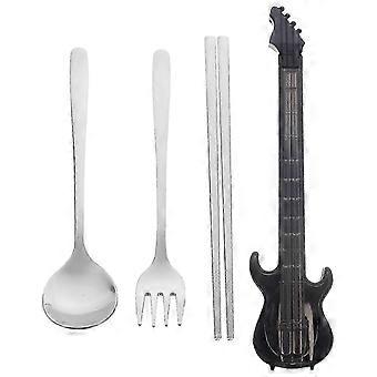 Portable Travel Cutlery Set with Spoon Fork and Chopsticks in Guitar Shape - 23x5.3x3.2cm
