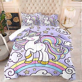 Rainbow Unicorn Bedding Set Full,Purple Unicorn Comforter Kids Sets with Stars Cloud for