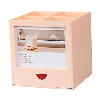 Rotating Penholder Calendar for Pencil with Drawer for Desktop Office Desk