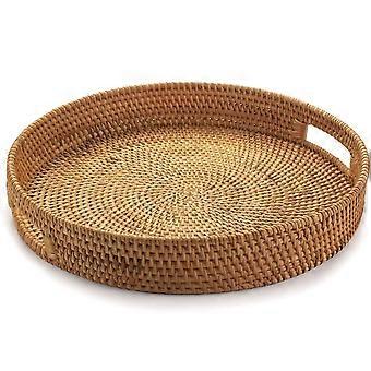 Round Woven Rattan Tray 2 Set With Cut Out Handles