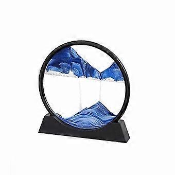 Sandscape Moving Sand Art Picture Round Hourglass 3D Mountain Sandscape Motion Display Flowing Sand Painting-Blue