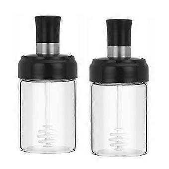 Sauce jar, transparent glass with lid and spoon