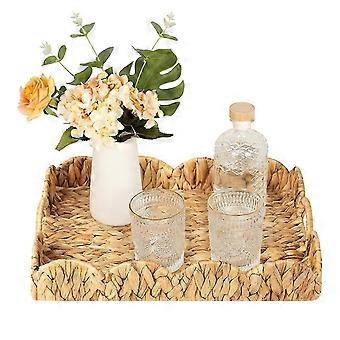 Scalloped Edge Rectangle Serving Tray, Rectangle Serving Tray with Built-in Handles, Decoratve Tray for Coffee Table