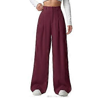Women's wide-leg trousers, pullover work trousers, high business casual trousers Burgundy XL
