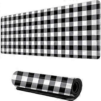 Gray/Black Plaid XL Gaming Mouse Pad – Extended Desk Pad with Stitched Edges, Rubber Base, Compatible with All Mice