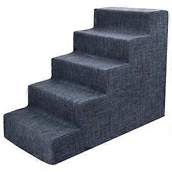 TiaGOC Foam Dog Stairs for Small Dogs & Cats, 5-Step Non-Slip Ramp for Couch, Sofa, High Bed - Dark Gray Linen