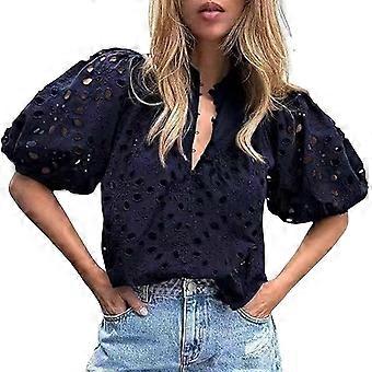 2025 Trendy Women's Short-Sleeve Casual Blouse with Embroidered Eyelet and Dressy Top Shirts