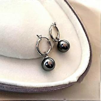 7-8mm Dark Blue Cultured Pearl Silver Stud Earrings AAA + ping
