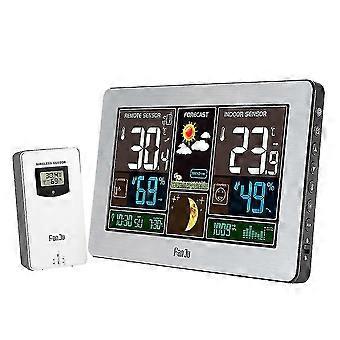 Fanju Fj3378 Weather Station Clock Indoor Outdoor Humidity Barometric Forecast Temperature Digital Alarm Clock With Led Screen - Silver/eu Plug