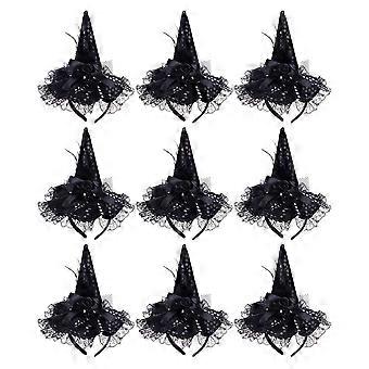 9pcs Halloween Witch Hat Headbands Masquerade Lace Sequins Hat Headbands