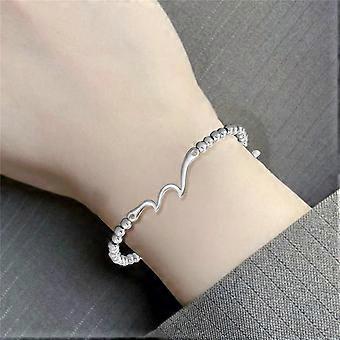 Adjustable 925 Sterling Silver Heart Cuff Bracelet for Women – Fashion Jewelry, Compatible with Stretch Cord, 8PCS