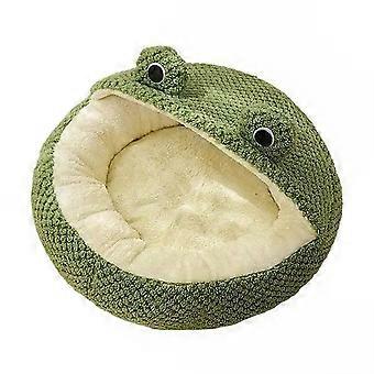 Semi-Enclosed Frog Cat Bed Small 40x40cm Green Plush Nest