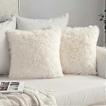 Set Of 2 Fluffy Faux Fur Cushions Soft Throw Pillow Case 43x43 Cm
