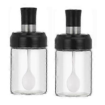 Set of 2 Transparent Glass Sauce Jars with Lids and Spoons - Ideal Canisters for Condiments, Spices, and Kitchen Storage