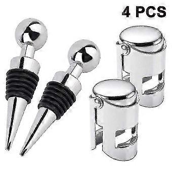Set of 2 Wine Stoppers & 2 Champagne Stoppers - Reusable Bottle Sealer for Freshness and Flavor Preservation