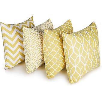 Set Of 4 Double Sided Square Cushion Covers, 45cm Length X 45cm Width, Yellow