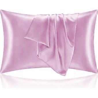 Silk Satin Pillowcase for Hair and Skin, Pink Pillowcase Standard Size Set of 2 Pack, Super Soft Pillowcase with Envelope Closure (20x26 Inch)