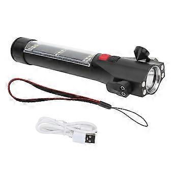 Solar Powered Flashlight 7 Working Modes Multifunction Safety Hammer Window Breaker IP46 Waterproof for Emergency