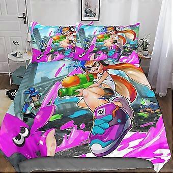 Splatoon Duvet Cover Splatoon Bedding Set, Printed D Soft Microfiber with Pillowcase with Zipper for Adults and Children King Pieces 135*200 CM