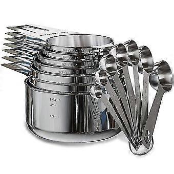 Stainless Steel Measuring Cups And Spoons Set Of 14 Pieces,7 Nesting Cups And 7 Stackable Spoons