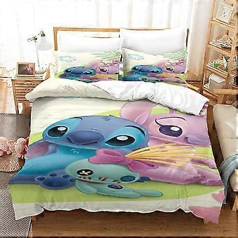 Stitch Bedding Set for Anime Characters with Pillowcases, Lilo & Stitch Duvet Cover with Zipper Closure, M