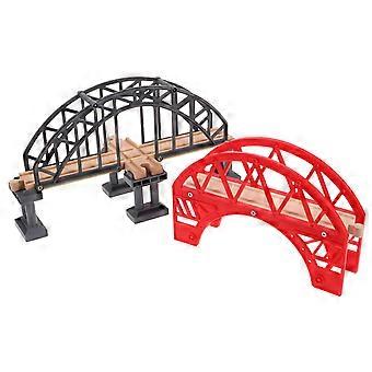 Sturdy Wooden Train Bridge Toy with Plastic Components for Building Tracks Red Color 2 Pieces
