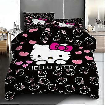 TE655 Sanrio Hello Kitty 3pcs Bedding Set, All-Season Soft Polyester Duvet Cover and Pillowcases, Digital Print, Zipper Closure, Machine
