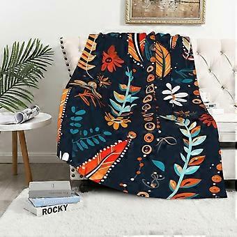 Thin Flowers Feathers and Leaves Floral Boho Throw Blanket, Folk-inspired Illustrations Nature Retro Print Throw Blanket, 60"x80", Flannel, No-fading,
