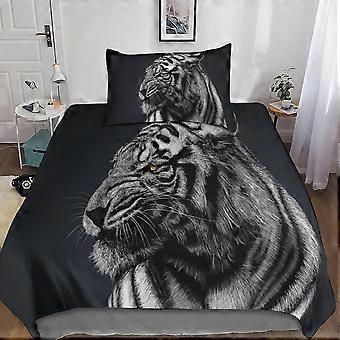 Tiger 3D Print Microfiber Bedding Set, with Duvet Cover and Pillowcases, Suitable for Boys and Girls with Zipper Closure 2 Pcs Single