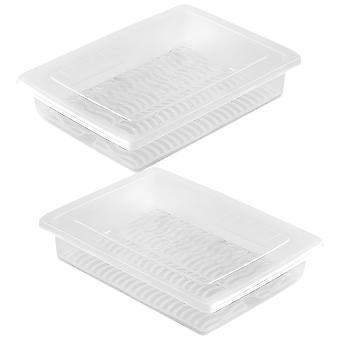Transparent Food Storage Containers with Removable Drain Plates Airtight Fridge Organizers for Fruits, Vegetables, and Seafood Space Saving