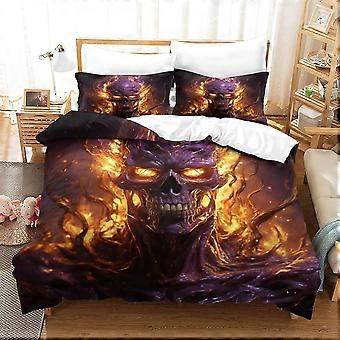 u303 Bedding Flaming Skull Comforter Set 3D Printed Reversible Bed Cover, Mysterious Pillowcase 3 Piece Set with Zip Duvet Cover for Teenagers And Adu