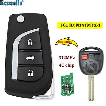 Upgraded Flip 3 Button Remote Car Key Fob 312mhz With 4c Chip For Lexus Rx300 1999-2003 Fcc Id: N14tmtx-1