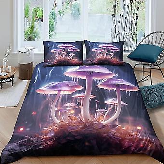 VCLUST Fantasy Mushrooms 3D Three-dimensional Digital Print Duvet Cover Bedding, 3 Pieces, Fairy Forest Quilt Cover Piece Matching Pillowcase with Zip