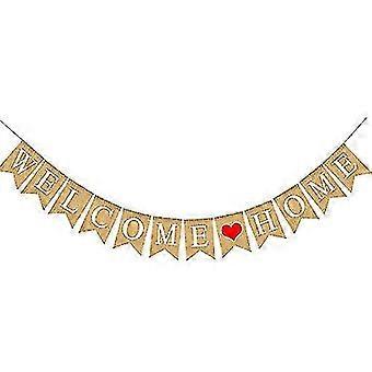 Welcome Home Banner Bunting, 3m Rustic Burlap Bunting Banner, Welcome Home Decoration Family Party Banner