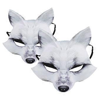 White Eva Fox Costume Mask for Party Use 2Pcs Animal Simulation Mask