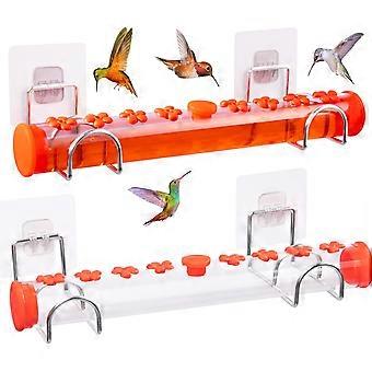 Window Hummingbird Feeder with Strong Suction Cups- Horizontal Humming Bird Feeders with 16 Feeding Ports for Outdoor Window Mount