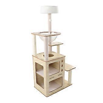 Feature:1. MULTIFUNCTIONAL DESIGN: Cat tree tower offers various combinations, including a top level cat bed, sisal scratching post, dangling ball, transparent cat condo, and different levels for jumping.2. 3D STRUCTURE: With its tower shaped design, this cat tree provides a 3D and stable structure that is not easily toppled. It ensures the safety and protection of your cat while they are playing or resting.3. AMPLE SPACE: Cat tree tower offers enough space for cats weighing up to 15 pounds to sleep or relax comfortably. It provides a cozy living environment for your furry friend.4. VERSATILE FUNCTIONALITIES: Multifunctional cat tree stimulates the curiosity of your cat, increases their activity level, and makes their life more interesting and enjoyable.5. STURDY AND DURABLE: Double layer wood cat tree tower is made of strong materials, ensuring stability and durability. It can withstand the weight of larger cats and is built to last.Specification:Item Type: Wood Cat Tree TowerMaterial: Density board, sisal, carpet cloth, fleece, PE.Package List:11 x Wooden Cat Tree Assembly Board4 x Sisal Scratching Post4 x Plush Scratching Post2 x Plush Adhesive Mat16 x Circular Adhesive Accessory15 x Screws1 x Plush Cat Bed1 x Transparent Cat Condo1 x Hex Wrench