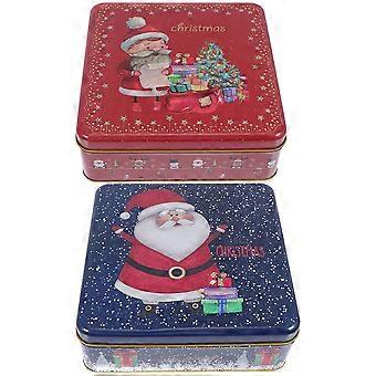 Xmas Tin Boxes Christmas Style Storage present Packaging Square Shape 2Pack
