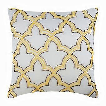 Yellow Pillow Case with Zipper, 24x24 inch Cotton Linen Sham, Lattice Trellis Beaded Design, Square Geometric Shams - Yellow Sunset Taj